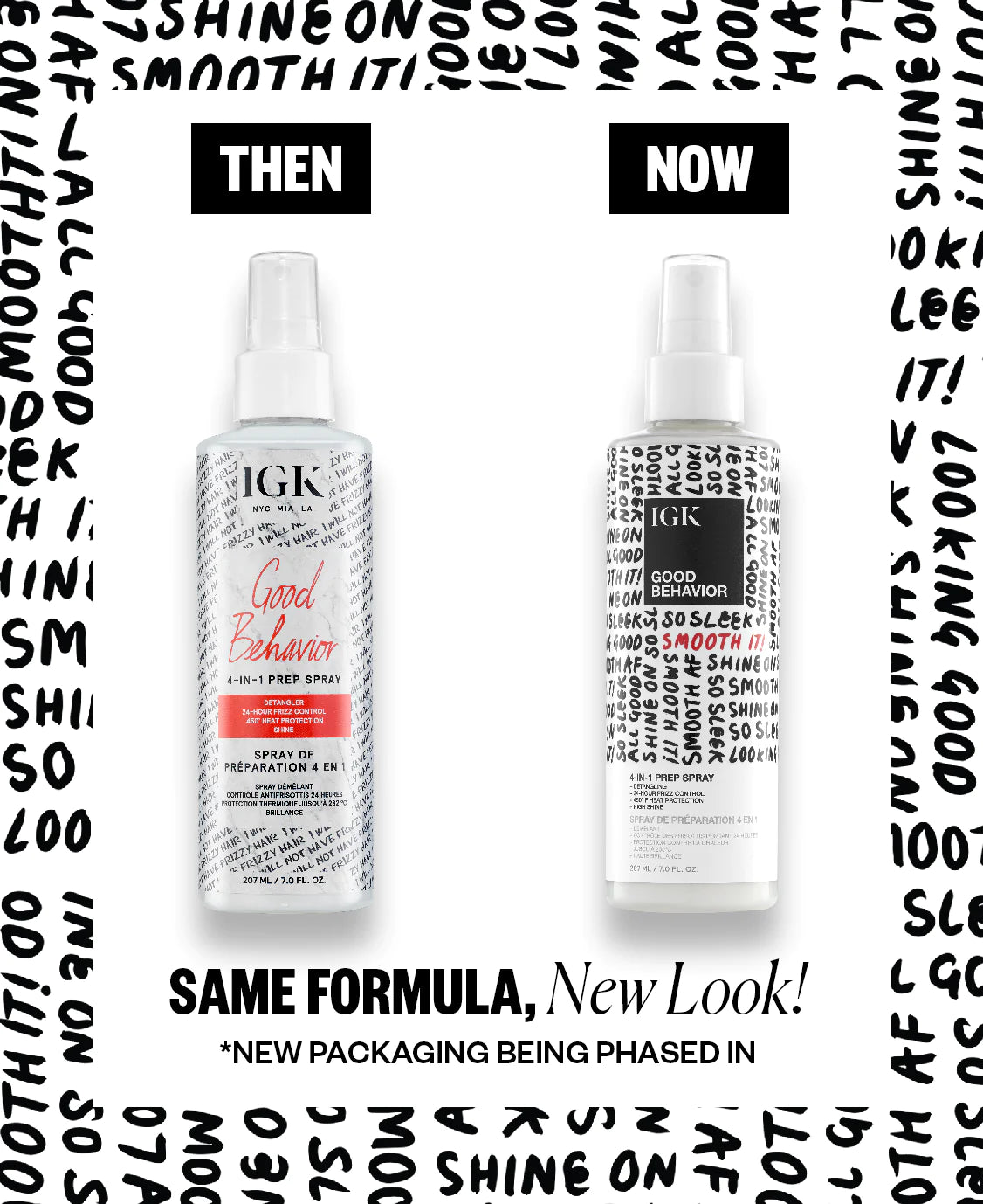 We gave Good Behavior 4 in 1 Prep Spray a new look! Packaging may vary.
